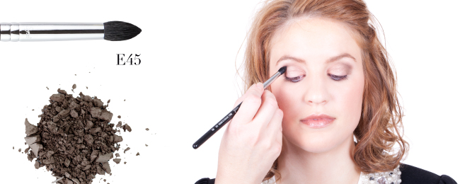 2. Apply the shade ‘Hitch’ directly into the crease using the E45 brush.